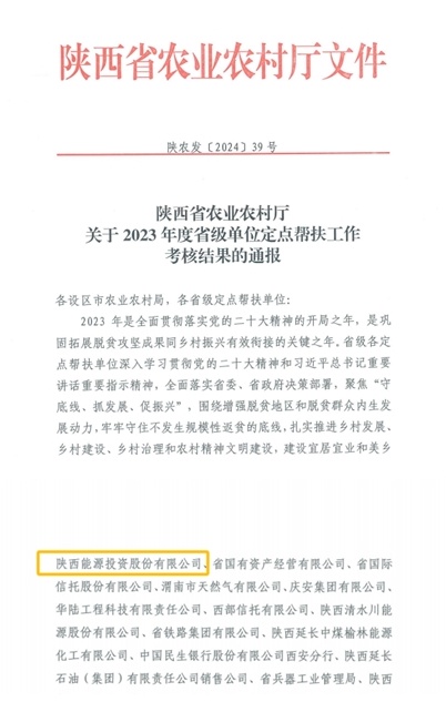 近日,2023年度省級單位定點幫扶工作考核等次名單公布,陜西能源鄉(xiāng)村振興定點幫扶工作連續(xù)三年被評定為最高等次“好”的評價。