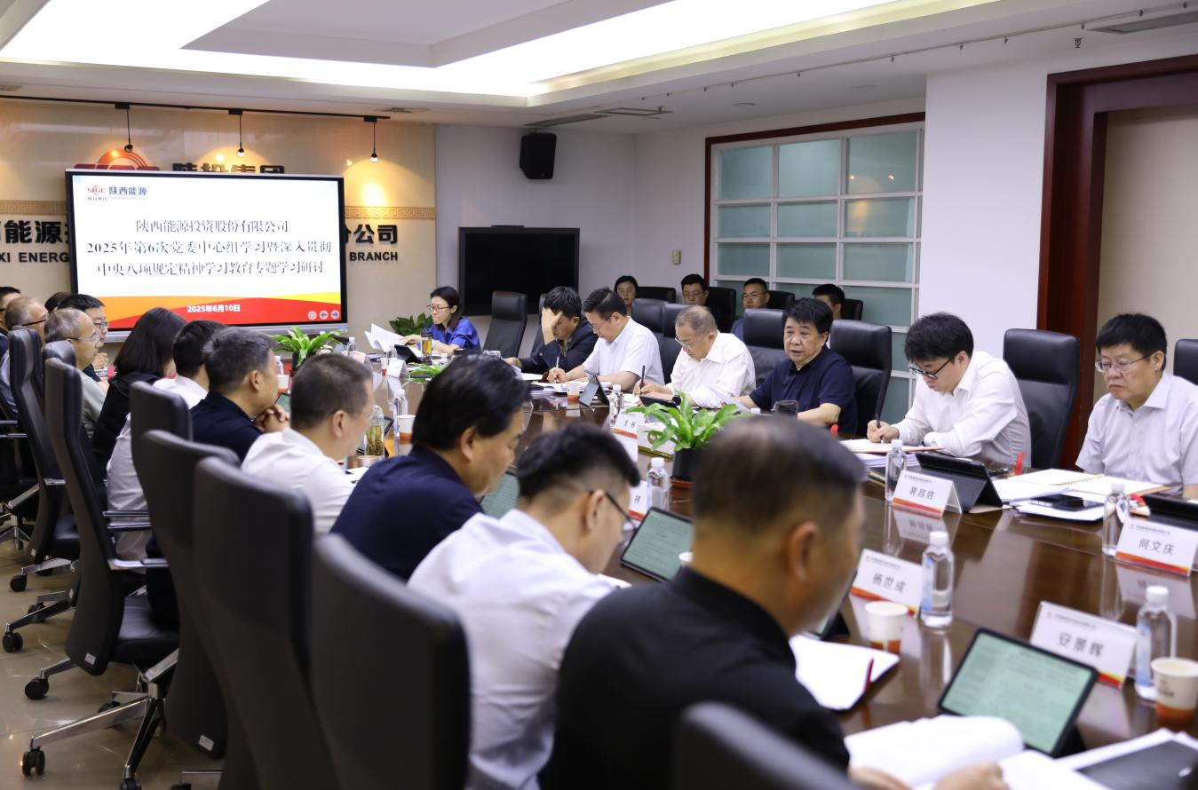 6月10日,陜西能源組織2025年第6次黨委理論學習中心組學習暨深入貫徹中央八項規(guī)定精神學習教育專題學習研討,學習了習近平總書記近期重要講話和來陜考察重要指示精神、《黨的十八大以來深入貫徹中央八項規(guī)定精神的成效和經(jīng)驗》《八項規(guī)定改變中國》等內容,領導班子成員結合會議主題進行了交流研討,主要領導根據(jù)學習內容安排了具體工作。