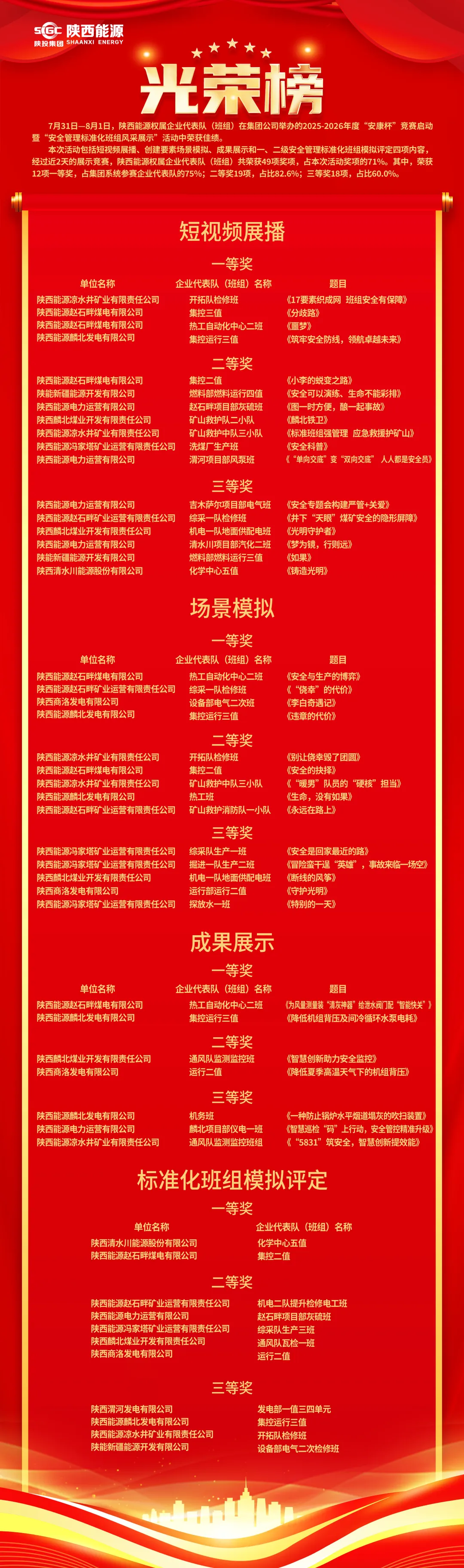 公司權(quán)屬企業(yè)在集團(tuán)公司2025—2026年度“安康杯”競賽啟動暨“安全管理標(biāo)準(zhǔn)化班組風(fēng)采展示”活動中榮獲佳績