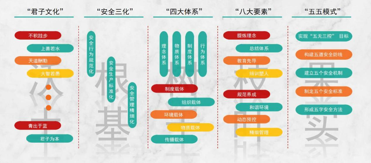 趙石畔煤電公司自2018年起創(chuàng)建特色“知·行”安全文化,從頂層設(shè)計(jì)層面提出了以“植于心、踐于行、立于預(yù)、安于本”為核心安全理念,以“安全三化”為根基,以“四大體系”為樹(shù)干,以“八大要素”為枝葉,以“五五模式”為果實(shí),以“君子文化”為陽(yáng)光雨露的“知·行”安全文化建設(shè)模式。在安全文化基層落地的過(guò)程中,經(jīng)過(guò)幾年實(shí)踐,又逐步形成了“從思安到行安”的雙模式實(shí)踐體系。