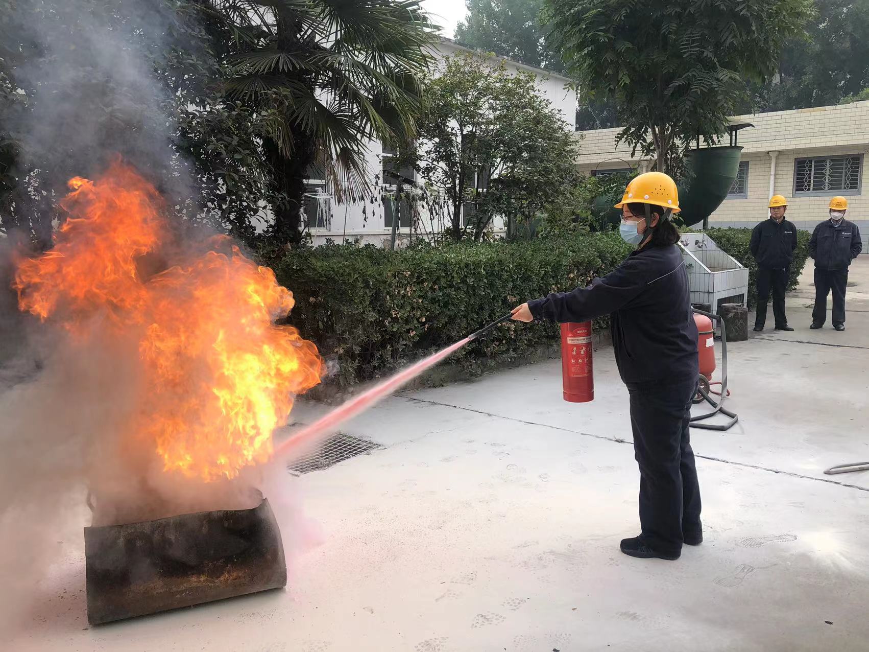 人員理論培訓(xùn),由生技部消防專(zhuān)工集中授課,現(xiàn)場(chǎng)答疑解惑傳授消防安全知識(shí),通過(guò)分析重點(diǎn)部位冬季防火的特點(diǎn),使受培職工掌握了現(xiàn)場(chǎng)撲滅火災(zāi)的要領(lǐng),知曉了緊急避險(xiǎn)和火場(chǎng)逃生辦法,在整個(gè)秋安大檢查中,累計(jì)培訓(xùn)主要班組20多個(gè),重點(diǎn)崗位人員200多人,對(duì)廠內(nèi)外委隊(duì)伍、勞務(wù)派遣人員代表同步實(shí)施了培訓(xùn)。在實(shí)操演練中,專(zhuān)職消防人員實(shí)際演練和示范了推車(chē)式干粉滅火器、手提式干粉滅火器、消防栓等滅火設(shè)備設(shè)施的正確使用方法,并指導(dǎo)參訓(xùn)人員逐一使用滅火器對(duì)模擬火場(chǎng)進(jìn)行撲救。