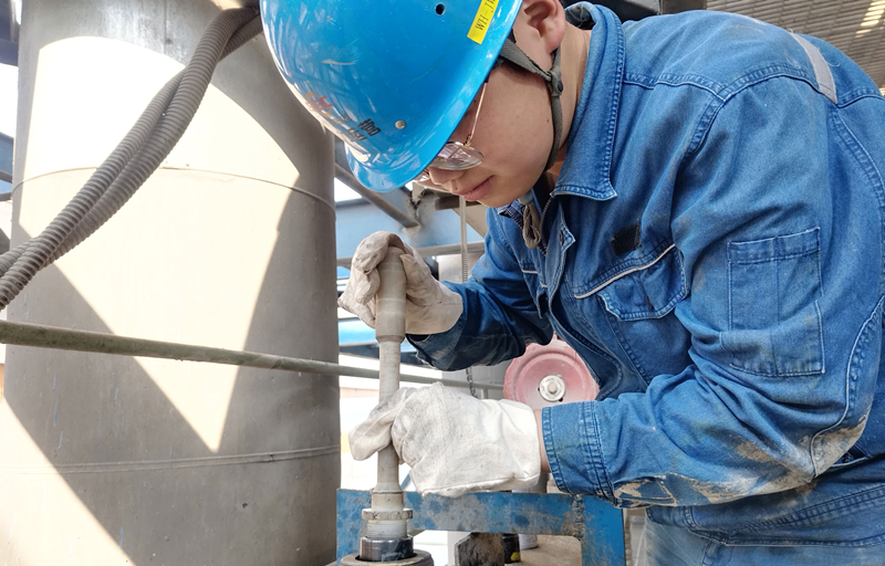做好風(fēng)險(xiǎn)辨識(shí)、隱患排查、“兩交底”等準(zhǔn)備工作,陳濤拿起扳手,開始拆卸濾網(wǎng)端蓋。由于管道系統(tǒng)密集,他只能蜷身在管道的空隙間,一手握扳手,一手固定端蓋,小心松動(dòng)螺絲。室內(nèi)空間狹小悶熱,不一會(huì)兒,他的臉上便浸滿細(xì)密的汗珠。緊完最后一根螺栓,濾網(wǎng)更換完成,陳濤才拖著僵硬的身子,從管道的間隙鉆出來,邊活動(dòng)麻木的雙腿,邊擦拭著臉上的汗水?!斑@點(diǎn)活,也就是一碟小菜,只要機(jī)組運(yùn)行平穩(wěn),大家安心過節(jié),這點(diǎn)辛苦,值了!”陳濤憨笑著說。