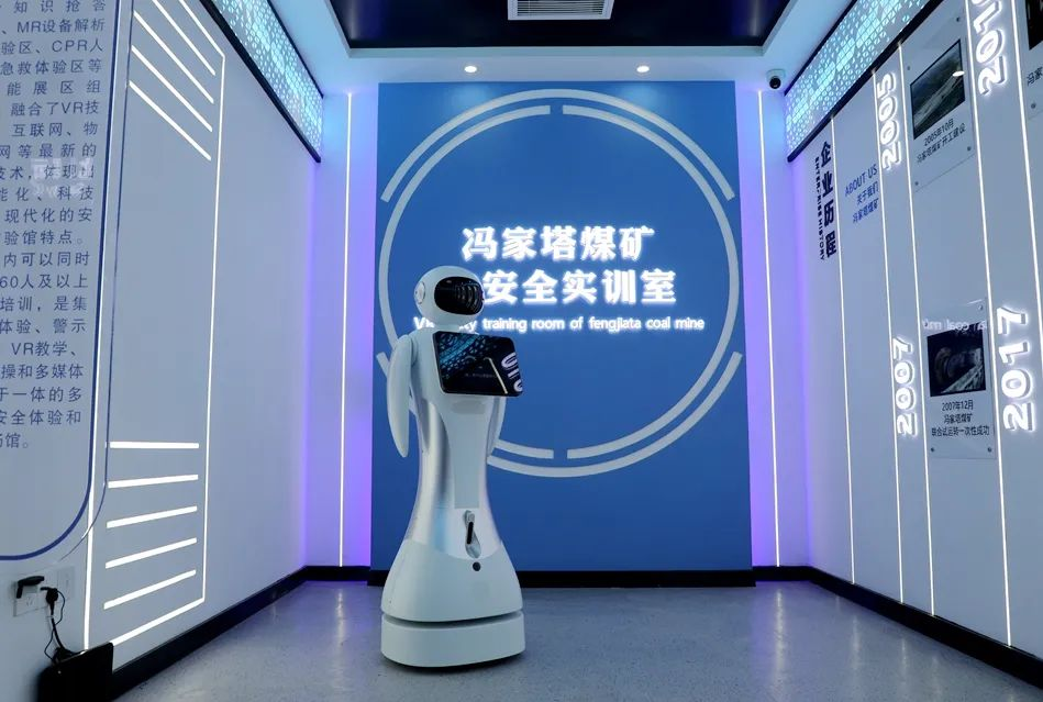 不僅如此,馮家塔運(yùn)營(yíng)礦燈房實(shí)現(xiàn)了一人一像一柜的智能化、數(shù)字化、超市化管理模式。礦燈、自救器、便攜式甲烷檢測(cè)報(bào)警儀全部“刷臉”領(lǐng)取,極大地提高了礦燈的日常管理、維護(hù)檢測(cè)以及存取的效率。在智能化輔助信息系統(tǒng)方面,依托智能化綜合管控平臺(tái),能夠快捷了解生產(chǎn)資訊,實(shí)現(xiàn)智能辦公;建設(shè)健康小屋,配備專業(yè)的健康檢測(cè)設(shè)備,如血壓計(jì)、血糖儀、心電圖機(jī)等,可以對(duì)員工的身體健康狀況進(jìn)行在線監(jiān)測(cè);在對(duì)外展示方面,建成了智慧化展廳,展廳聚焦智能裝備、智能系統(tǒng)與平臺(tái),配備有“馮小智”講解機(jī)器人,可以通過(guò)數(shù)字沙盤(pán)、動(dòng)態(tài)演示與數(shù)字交互,直觀呈現(xiàn)智能科技在企業(yè)智能化升級(jí)中的技術(shù)成果。
