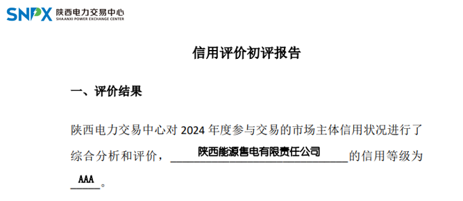 近日,在陜西電力交易中心2024年度經營主體信用評價中,陜西能源售電有限責任公司(以下簡稱“陜能售電”)獲AAA級最高等級信用評價。這一榮譽不僅體現(xiàn)了陜能售電的信譽評價優(yōu)、綜合實力強,也為后續(xù)公司享受履約保函減免、持續(xù)成為全省僅有的三家保底售電公司之一奠定了基礎。