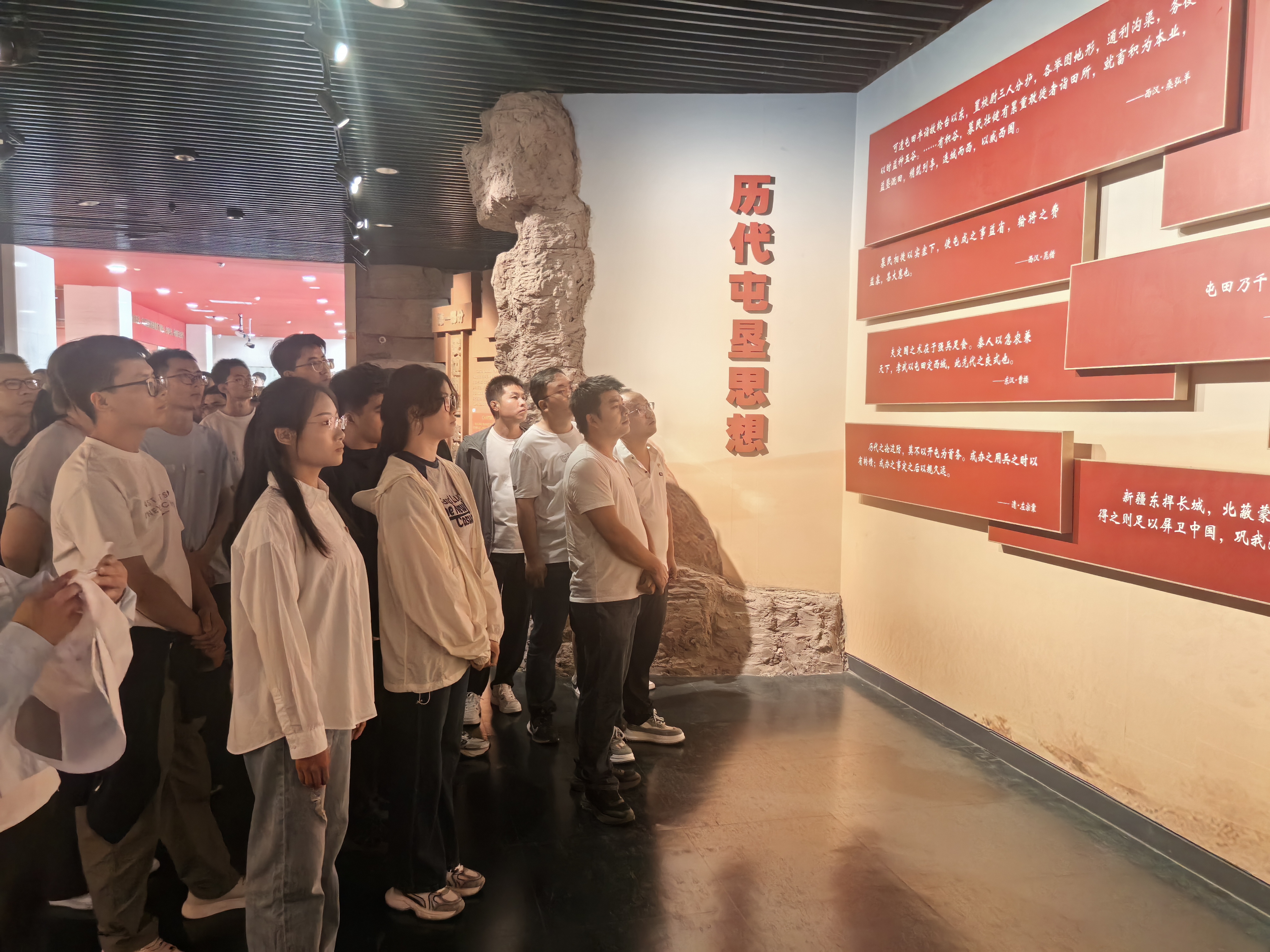 在講解員的引導下,大家依次參觀“屯墾戍邊、繼往開來”等主題展廳,通過泛黃的軍墾日記、銹跡斑斑的坎土曼、簡陋的地窩子復原場景等珍貴文物,系統(tǒng)學習新疆生產(chǎn)建設兵團從無到有、由弱到強的奮斗歷程。講解員以“八千湘女上天山”“王震將軍率部開墾石河子”等鮮活故事,深刻闡釋了“熱愛祖國、無私奉獻、艱苦創(chuàng)業(yè)、開拓進取”的兵團精神與延安精神的內(nèi)在契合。黨員們認真聆聽,不時駐足凝視,在軍墾先輩的奮斗故事中汲取攻堅克難的精神力量。