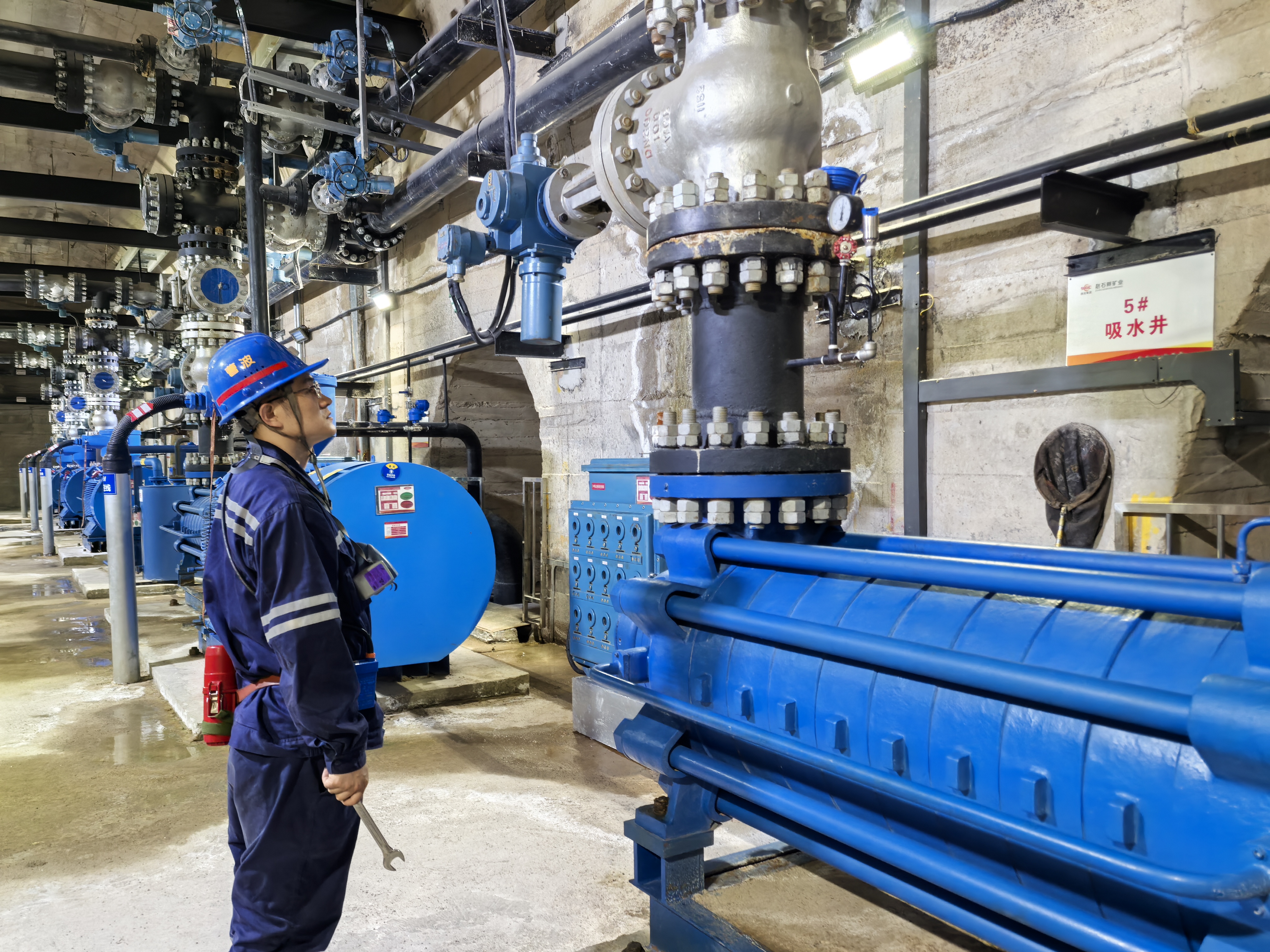 水泵房轟鳴作響,閥門壓力表指針穩(wěn)穩(wěn)停在5兆帕。值班水泵工屏息凝神,開啟排水閥門,確保井下水倉水位始終低于警戒線?!岸嗯乓环剿?,井下就多一份安全?!彼麄冋f。