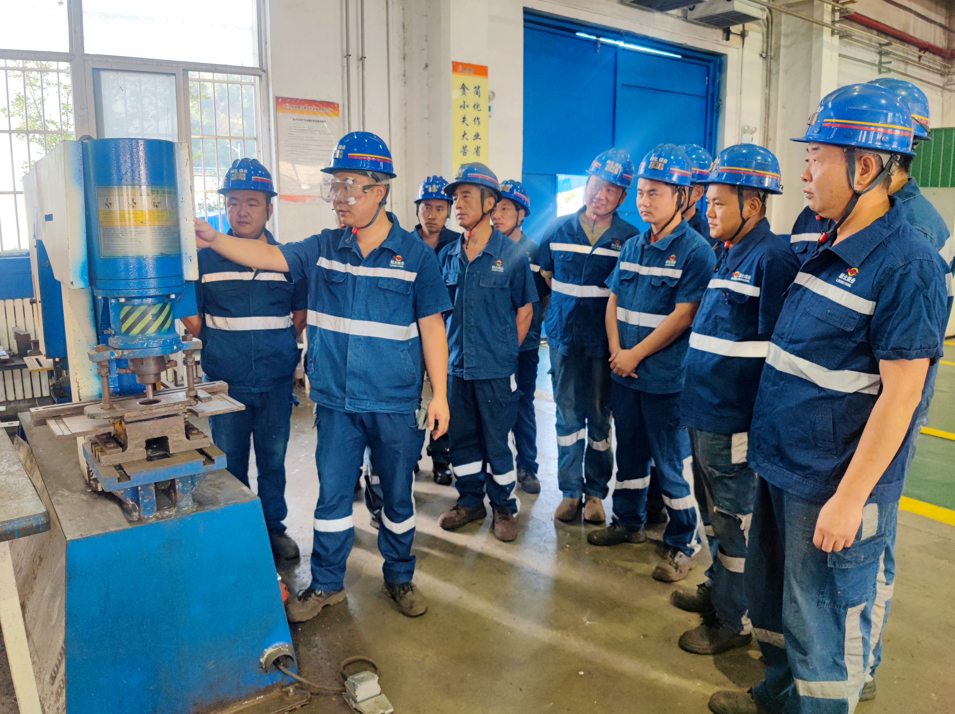 技術(shù)骨干示范講解液壓剪板機(jī)、搖臂鉆床、行車、叉車等設(shè)備設(shè)施的操作技能,通過(guò)實(shí)操演示和參與體驗(yàn)操作等讓工人鞏固所學(xué)知識(shí),使大家不僅能夠熟練維修各種機(jī)械電氣設(shè)備,還能對(duì)電氣系統(tǒng)、液壓系統(tǒng)等進(jìn)行維護(hù)和調(diào)試。