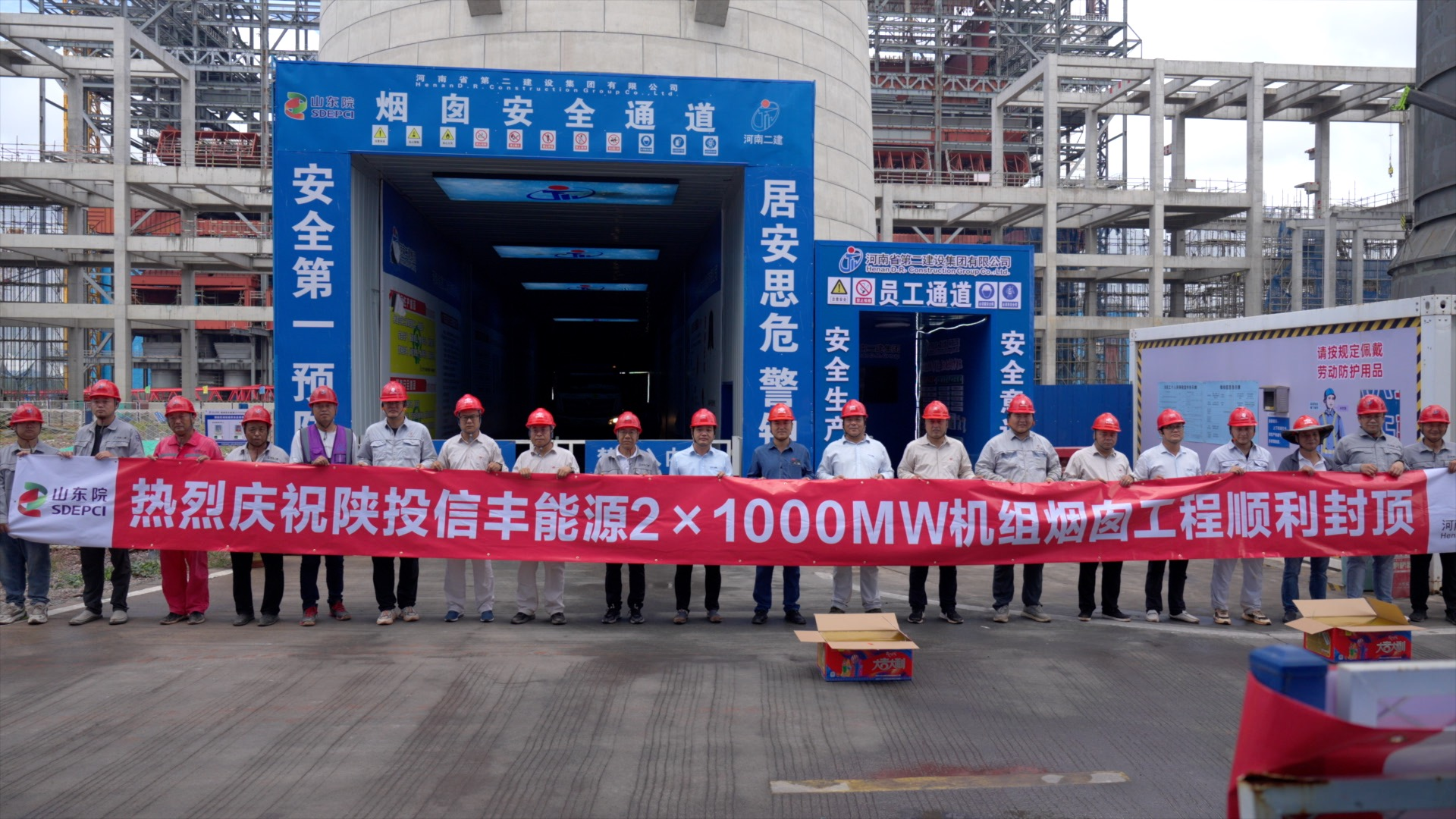 9月20日,陜投信豐能源2×1000MW機(jī)組工程煙囪和1號(hào)吸收塔殼雙雙封頂、提前完工。